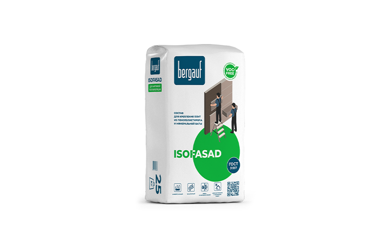 Клей для плит из пенополистирола и минеральной ваты Bergauf ISOFASAD, 25 кг