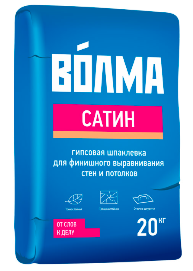 ГОСТ Р 58278-2018; «ВОЛМА-Сатин» - сухая шпатлевочная смесь на основе гипсового вяжущего, минерального наполнителя и модифицирующих добавок.