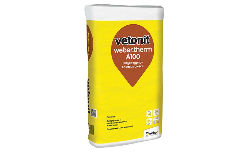 weber.therm A100 — штукатурно-клеевая смесь для пенополистиролаи минеральной ваты, тонкослойного ремонта оштукатуренных поверхностей
